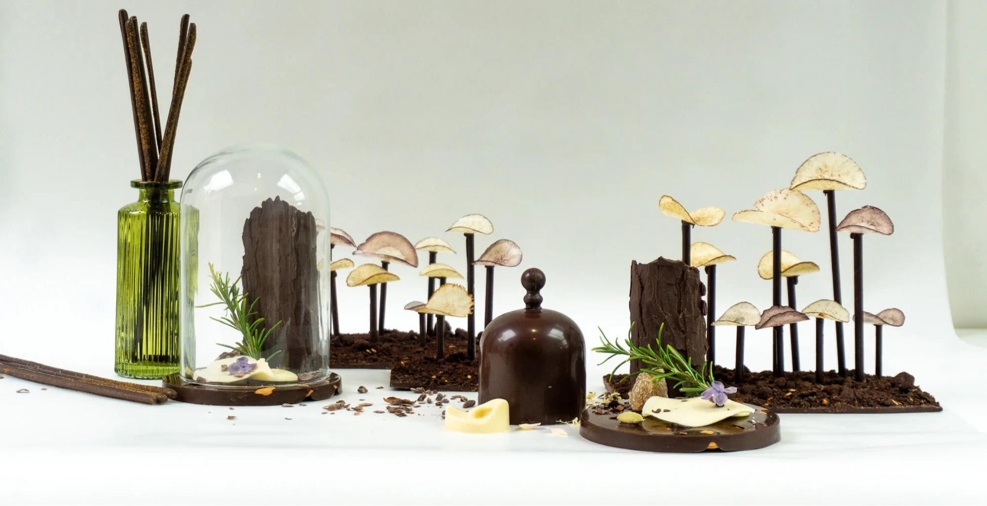 L'automne s'invite dans notre atelier : entre volée de champignons, bâtons d'encens et extraits de sous-bois, nos chocolats se parent d'arômes profonds et réconfortants. Des créations façonnées à la main inspirées par la nature et le savoir-faire artisanal.