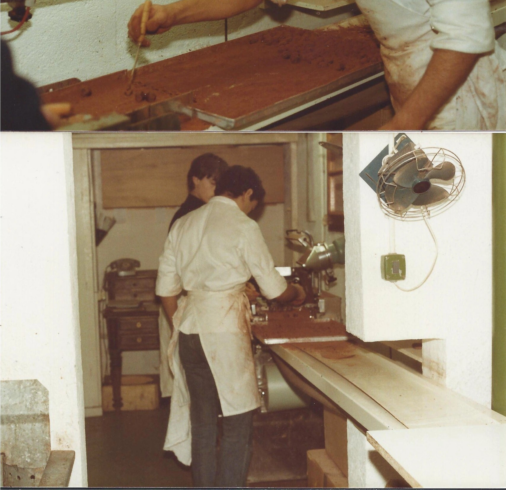 Notre père Pierre Colas, alors pâtissier, s’installe dans le sous-sol de la maison familiale à Maule pour confectionner des chocolats de qualité qu’il propose aux pâtissiers de la région. Très vite, la famille, les amis, le voisinage, viennent acheter au labo et la vente aux particuliers se développe.
